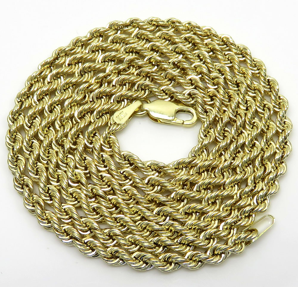 10k Yellow Gold Hollow Rope Chain 18-30 Inch 3mm