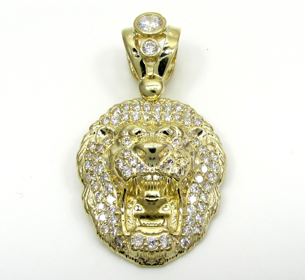 10k Yellow Gold Mini Cz Lion Head Pendant 1.00ct