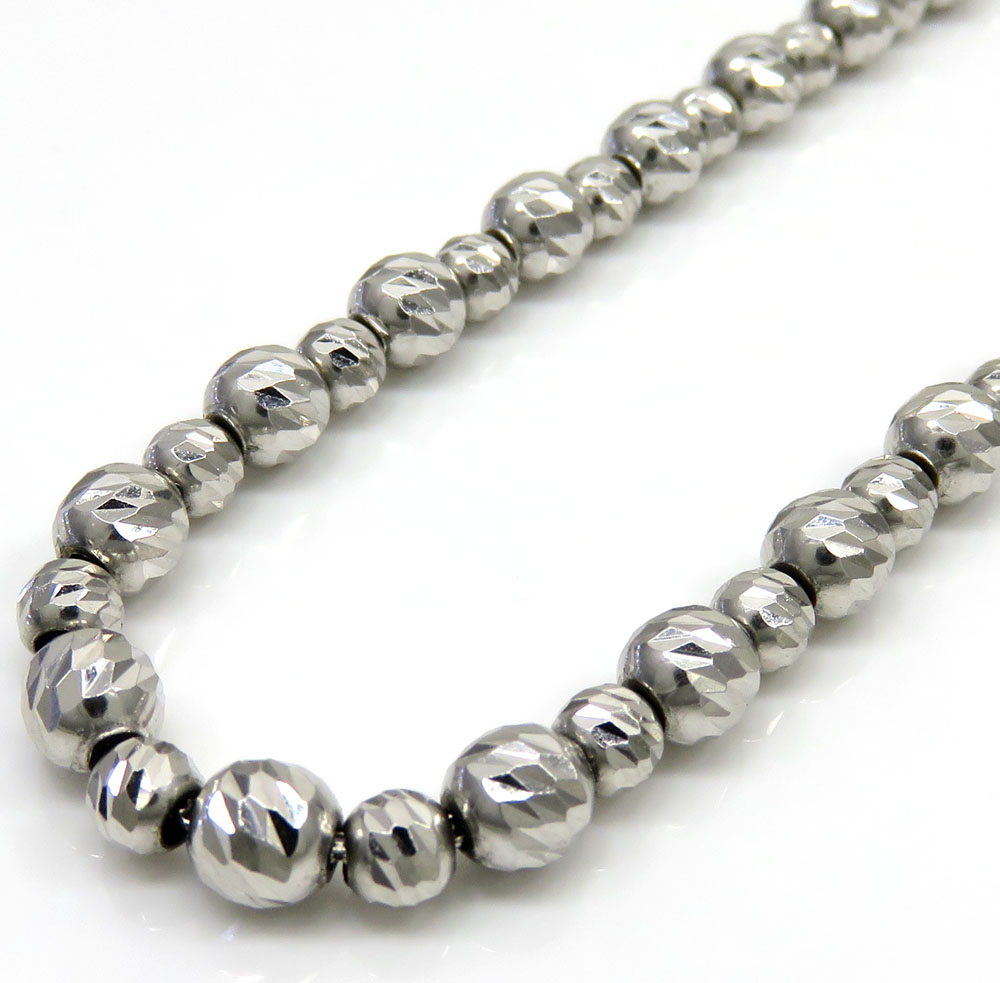 14k White Gold Diamond Cut Bead Chain 16 Inch 5mm