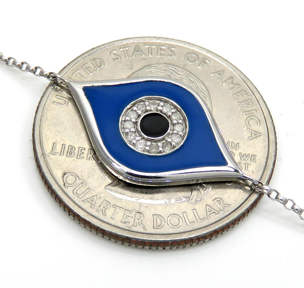 14k White Gold Blue Enamel Diamond Evil Eye Bracelet 7 Inches 0.07ct