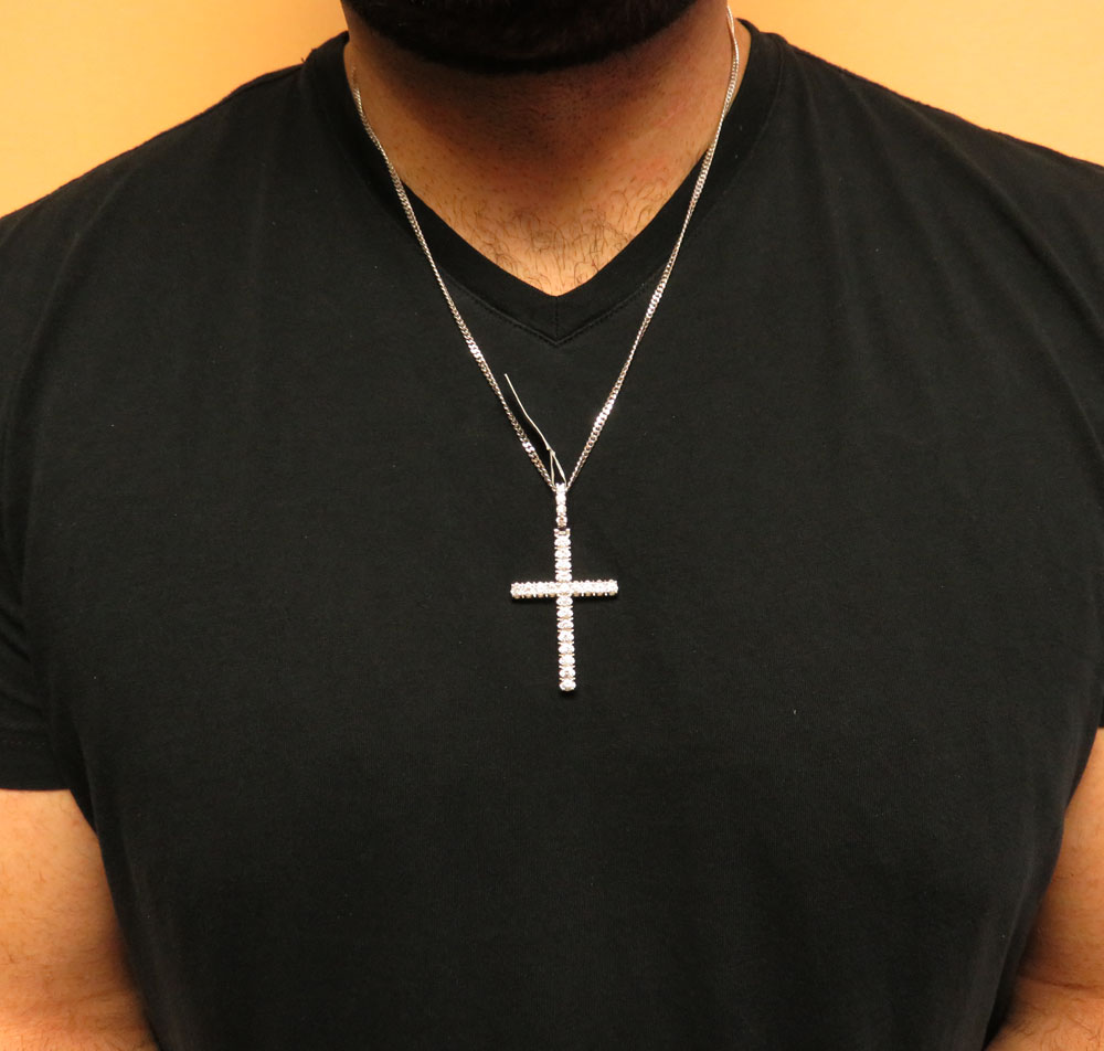 14k White Gold Large 15 Pointer Diamond Prong Cross 3.36ct