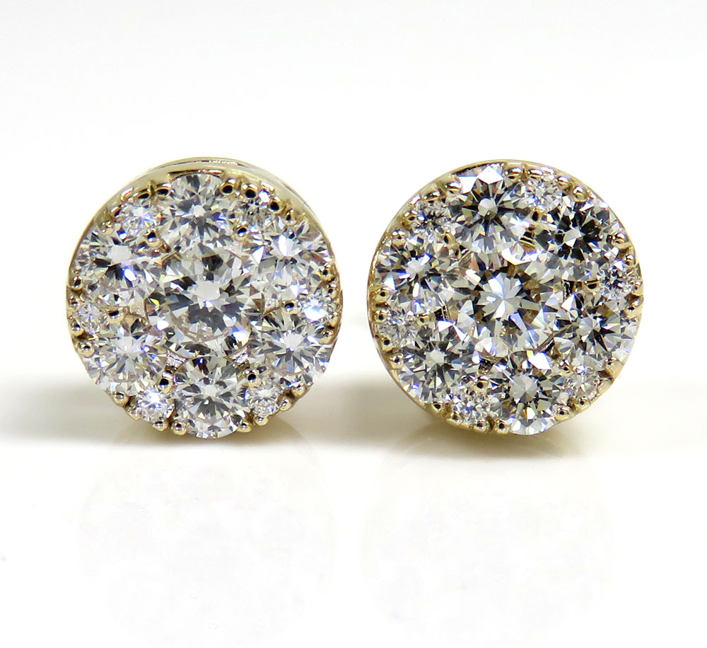 14k Yellow Gold Round Frame 26 Lab Grown Diamond Cluster 9mm Earrings 1.55ct