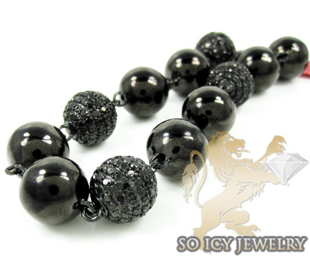 Black Sterling Silver Black Diamond Macramé Smooth Bead Rope Bracelet 9.05ct