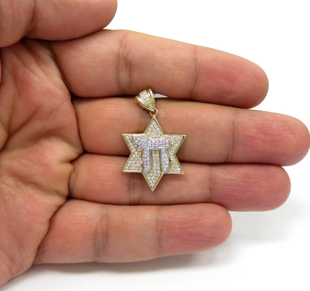 14k Two Tone Gold Diamond Chai & Star Of David Pendant 0.49ct