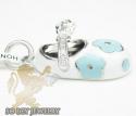14k White & Blue Flower Enamel Diamond Baby Shoe Pendant 0.09ct