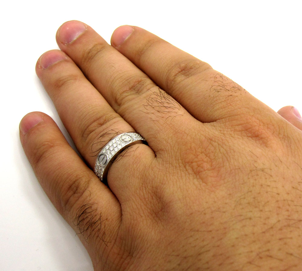 18k Gold Diamond Unisex Screw Band Ring 1.10ct