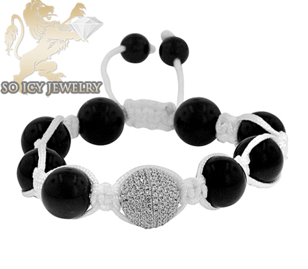 Two Tone Sterling Silver Cz Macramé Smooth Bead Rope Bracelet 1.50ct