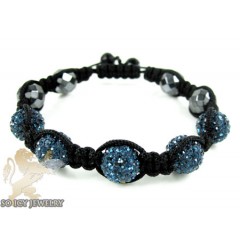 Black & Ruby Red Rhinestone Macramé Faceted Bead Rope Bracelet 5.00ct