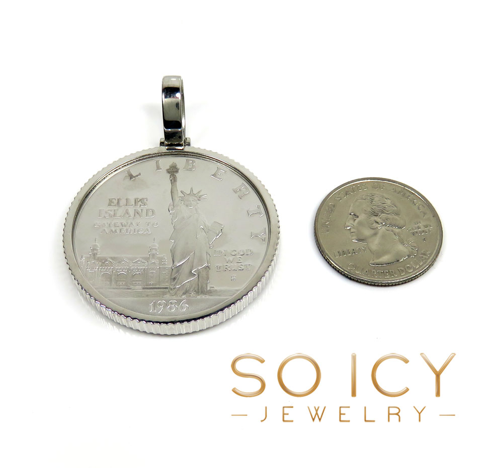 14k White Gold Coin Frame Holder W/ Silver Coin