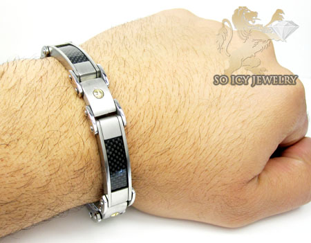 Two Tone Stainless Steel Black Carbon Fiber Screw Link Bracelet